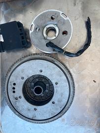 Salve come da titolo, vendo accensione elettronica px in ottime condizioni, statore nuovo, comprato da poco, volano leggermente sbeccato, bobina perfetta, il tutto originale Piaggio, al modico prezzo di 130€. Atenersi perditempo, grazie.