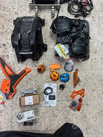 Vendo accessori compatibili con KTM EXC/EXCF DAL 2024 in poi (erano montati su KTM EXC F 350 2024): - Kit protezione acerbis con normali segni di usura: - Paratelaio arancione-nero 20 - Paracarter nero 20 - Paramotore 30 - Paravalvola a farfalla xgrip TE/EXC 250/300 2018/2023 25€ - Protezione collettore di scarico ergal blu TE/EXC 250/300 2017/2023 20€ - Tappo serbatoio olio miscela ktm/husqvarna TE/EXC 250/300 2017/2023 20€ - Spessori manubrio 1cm ktm powerparts 77701939010 25€ - Contaore 10€ - Paracruna catena ergal EXC 2012/2023 15€ - Protezione pignone ergal EXC 2017/2023 15€ - Racecap ruote anteriori e posteriori 20€ - Staffa di montaggio/riser ribassato ktm powerparts (altezza 31mm) rispetto all’originale. Nuova mai montata. Per compatibilità A48001039031 (KTM EXC/EXC F 2024-25-26) Vendo a 40€ - Tappo serbatoio ergal blu TE/FE EXC EXC F 2017-26 20€ - Tappo serbatoio ergal arancione TE/FE EXC EXC F 2017-26 20€ - Tendicatena zeta racing ergal blu nuovi husqvarna fe/te 2016-21 20€ - Kit faro a led con pulsantiera e cablaggio 100€ - Copertina sella 15€ Tutti gli accessori sono in ottime condizioni generali.
