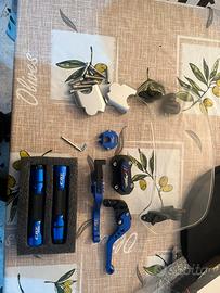 Manopole e leve blu , riser manubrio , prolungamento parabrezza , copertura chiave , 1 protezione paracarena tutto in blocco