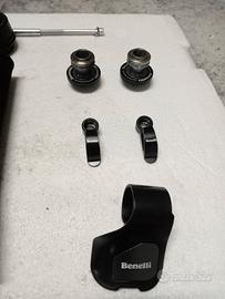 Kit accessori per Benelli TRK 702 e 702X. - Protezioni/tamponi paramotore. - Tamponi forcella. - Leve freno posteriore maggiorato - porta cellulare/navigatore - nottolini per cavalletto alza moto -cover liquido freni posteriore -assistente manopola acceleratore -piastra maggiorata cavalletto laterale NB: possibilità di vendita singolarmente