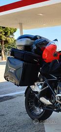 VENDUTO - Tris di valigie vario nere (laterali e bauletto top case con relativa piastra compresa), vendute con borse interne per le laterali, e borse espandibili aggiuntive con relativo supporto - 600€