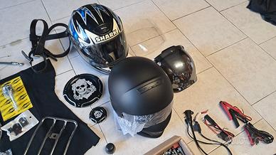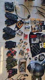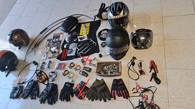 vendo -nr 4 fili gas originali forty eight alla coppia €50 lunghezza 100 cm -nr 1 cavo frizione originale forty eight €40 lunghezza 146 cm -tubo originale freno anteriore forty eight € 50 lunghezza 100 cm -porta pacchi cromato per sportster €40 -sellino a ventose con skull in rilievo nuovo €30 -cinghia porta coperta in cuoio €30 -cover primaria e puntinerie skull nero €50 -cover primaria e puntinerie originali 103 € 100 -fascette per terminali la coppia €30 -riduttori attacco terminali 3 misure €15 -pastiglie freno Brembo €30 -cover puntinerie originale sportster 72 € 15 -nr 1 cover puntinerie originale softail €15 -tappo olio con manometro per softail €40 -rialzo pedane passeggero €40 -cavi per manutentore €/cad 10 -copri bulloni sella uno cromato e uno nero € 5 -bolla a specchio con bottoni €30 -visiera trasparente €20 -casco integrale nero con parte anteriore rimovibile nuovo taglia M € 80 -casco harley davidson nero + glitter usato taglia S €50 -casco harley davidson usato in pelle nero e arancio taglia con visiera estraibile L € 70 -casco integrale shark taglia L usato € 20 -2 catarifrangenti rossi €5 -guanti rosa taglia S €10 -guanti neri taglia M € 10 -guanti neri taglia Xxl €10 -guanti verdi taglia M € 20 -guanti moto cubo taglia S estivi € 10 -mascherina bandidos € 30 -cover skull adesivi per bulloni o decorazioni la coppia € 25 -cover bulloni anteriori sportster skull con vitine € 50 - copri pompa sportster cromato €30 -coppia freccette a led €10 -bulloneria mista a richiesta