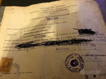 Vendo libretto più targa lambretta 150 special per uso esclusivamente da COLLEZIONE targata BO 13xxxx con foglio complementare