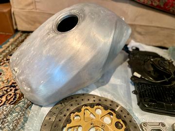 -serbatoio alluminio ducati 851, con ammaccatura lato dx, flangia per tappo benzina racing VENDUTO -radiatore acqua con ventola ducati 851 prima serie, 150€ -teste ducati 851 e 888, teste marchiate “G” versione corsa, valvole nimonic marca Menon 37/31, condotti lavorati, 800 eur -albero motore ducati 851 e 888, corsa 64 mm, ottime condizioni 250 eur -cilindri ducati 888 sp4 alesaggio 94 mm, 100 eur -impianto elettrico posteriore ducati 851 e 888 strada 150 eur -sella posteriore passeggero ducati 851 anno 1990, 50 eur -Pinze brembo ducati 851, f1 750, paso, ecc 250 eur -frizione ergal racing NO antisaltellamento completa, tamburo, cestello, piattello, 200 eur -pedane pilota ducati 888, senza poggiapiedi o leve, 100 eur -dischi brembo originali flottanti ducati 888 sp, VENDUTI