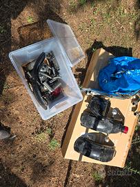 parafanghi vari e pezzi vari freccie ,corona , marmitte originali , carenino, vendo solo tutto in blocco a molto meno del loro valore singolo , quindi non aspettate e non fate offerte ridicole è gia un ottimo prezzo, venite prendete tutto , tranne la scatola ikea .. scrambler o boneville