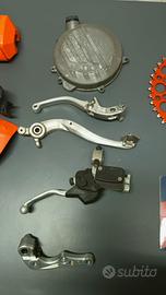 - Corona Renthal 42 denti + pignone Prox 13 denti 50€ - Vite scolo olio Scar NUOVA 20€ - Pompa assiale Brembo 130€ - sposta pinza assiale Brembo 50€ - Leva Braking 30€ - Pedale freno post originale Ktm 50€ - Carter frizione originale Ktm 80€ - Paracolpi Protaper 30€ - Paramani 20€ - Manubrio Neken pari al nuovo 70€