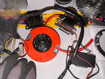 Kit Top performance tpr 76 completo. Pochissime ore di utilizzo. 180€ Kit malossi con canna cromata, cilindro e testata, (montava pistone bifascia) pochissime ore di utilizzo. 120€ Pacco lamellare malossi con lamelle in carbonio 30€ Filtro polini per carburatore 21. 15€ Filtro malossi per carburatore 28. 20€ Accensione MVT DD 199€ con luci Collettore polini per carburatore 21. 25€ Collettore polini per carburatore da 28. 25€ Comando gas rapido domino 20€ Corona 60 denti (era montata su beta 50 cc RR 20€ Pignone 13 denti 10€ Pignone 14 denti. 10€ E’ tutto in ottimo stato. Mille modifiche e tanti soldi spesi ma alla fine la moto è stata utilizzata davvero pochissime ore. Beta fantic sherco Tutto compatibile per motori AM6. Vendo in blocco (super affare) o pezzi singoli. Per foto dettagliate, contattami. Enrico Lo Verde