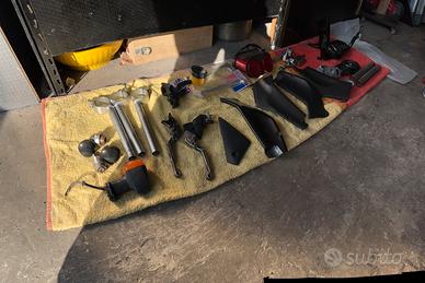 Vendo come da foto, cerchi marchesini completi 800).. scarico completo omologato 450?, ammortizzatore di sterzo gubellini 100?, mono HAT ( gubellini) 150?, pompa freno radiale nissin completa tubi/ pinze 180? cruscotto/ telaio 140?. Per prezzi degli altri articoli chiamare. Valuto offerta pacchetto completo. Tel Dario 3286364327