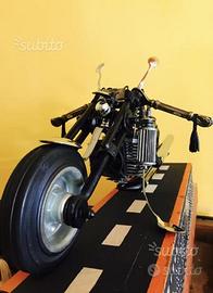 ( VENDO ) Questa MOTO ( statica ) da modellismo ; SI PUÒ FARE HARLEY TOURING OPPURE CUSTOM CON UN SEMPLICE MOVIMENTO DI PRESSIONE SUGLI AMMORTIZZATORI ANTERIORI !!! Assemblata con tutti materiali ritrovati e diversi, ( cucchiai,sifone,tiranti,cucchiaini,tubo di fontana,apribottiglie antichi,tubi d'acciaio,ruote da carrello,borse create a mano in pelle con riporti inerenti,ventola PC, la testata è di un motore di auto a scoppio, il serbatoio è un cucchiaio grande ) ECC.ecc......! STUPENDA AFFASCINANTE ED ORIGINALE non va in moto SI INTENDE ; è statica. ( FACENDO LEVA SULLE AMMORTIZZATORI ANTERIORE LA MOTO SI ACCORCIA E SI ALZA,E DIVENTA CUSTOM; TIRANDO IN AVANTI GLI AMMORTIZZATORI ANTERIORE SI ALLUNGA E SI ABBASSA, PER DIVENTARE TOURING, UNA VERA E PROPRIA CAPACITÀ DI MOVIMENTO STATICO CAMMINA FLUIDA,TUTTA FATTA A MANO CON PAZIENZA E LAVORO CERTOSINO CURATA NEI MINIMI DETTAGLI. ( È LUNGA 60cm. LARGA 23cm.ALTA DAI 27 ai 33 cm. ) ESAGERATA E DAL PESO DI OLTRE 4 kg. Per tutti coloro che sono appassionati ricercatori,modellisti,Harleisty,per coloro che vogliono avere un pezzo unico, originale,e di grande artigianalità e creatività, non vi resta che contattarmi, GRAZIE a tutti coloro che ne apprezzeranno. LA TOLGO PER EURO 290,00 pensate che ci sono voluti mesi di ricerca e disegno,e svariate ore di lavoro per costruirla. PER LA CONSEGNA A MANO SOLO IN ZONA DOVE LOCA L'ARTICOLO; oppure posso spedire con accurato imballo e con più 18,00 di spedizione a vostro carico, spedizione tracciabile ACCURATO IMBALLO e con corriere di Poste Italiane Grazie.