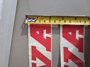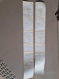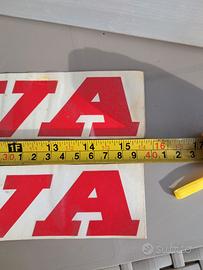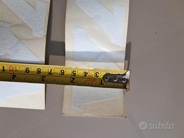 Adesivi Cagiva originali, lunghi 40 cm e alti 5; esattamente come in foto. Il prodotto è nuovo, invecchiato nel tempo ma ben tenuto. Ottimo da utilizzare nel restauro di un prodotto Cagiva.