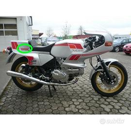 (R.14696) Vendo decalco fianchetto posteriore lato destro nuovo per Ducati Pantah 600 SL di colore rosso con lunghezza 150 mm e altezza 19 mm , per misure vedere foto , foto del veicolo solo a scopo dimostrativo , disponibile solo lato destro no sinistro