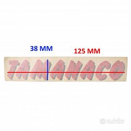 (R.14615) Vendo decalco scritta Tamanaco nuovo per Cagiva Tamanaco 125 cc con codice 800060759 - 60759 di colore rosso e nero con lunghezza 125 mm e altezza 38 mm , per misure vedere foto , solo 1 pezzo disponibile