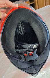 casco usato ma ben messo. ha giusto qualche segno davanti,e sotto come da foto si sono spellati i guanciali in similpelle (cinesi). ma nulla che influenza la funzionalità del casco. non ho scatola. ho sacchetta porta casco originale agv. taglia MS