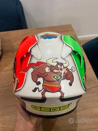 Vendo casco personalizzato usato pochissime volte . Un piccolissimo graffio sulla parte alta come vedete in foto. Taglia S Ma volendo si possono cambiare le calotte all’interno.