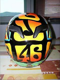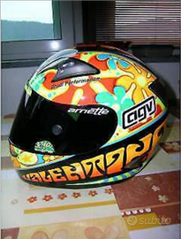 Casco NUOVO DI ZECCA, MAI INDOSSATO, comprato solo per puro collezionismo, TIRATURA LIMITATA solo 500 esemplari al mondo, completo di custodia, etichette e scatola AGV. In dotazione con visiera chiara, la visiera scura con adesivi originali (comprati a Tavullia) NON é compresa nel prezzo.