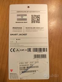 Airbag moto Dainese, modello Smart Jacket, taglia L, comodissimo per il pronto utilizzo, si attiva con la sola chiusura del bottone. Praticamente intatto, utilizzato solo poche volte (causa regalo doppio). Metà prezzo rispetto al nuovo. Mai incidentato , quindi mai scoppiato e ricaricato. Per tale ragione non è mai stato revisionato in Dainese (da effettuare).