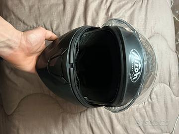 Usato, in buono stato, presenta solo qualche normale segno ci usura dato dall'utilizzo in strada, il casco è modulare quindi si può tirare su la mentoniera, e ha una seconda visiera retraibile scura. Taglia S 55-56. In più ha già