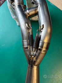Marmitta Akrapovic completa per Yamaha R6 dal 2017 al 2025. I collettori sono nuovi, il silenziatore usato con qualche graffietto come si vede in foto. Non c'è la protezione in carbonio