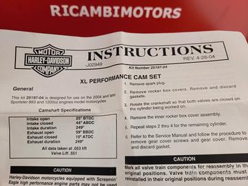 CODICE H-D 25197-04 Prezzo 450euro NUOVO FONDO DI MAGAZZINO Set Screamin'Eagle Pro XL Performance Cams Prodotto H-D Genuine Screamin'Eagle. Montaggio bolt-in. Aumento di portanza di 0,551 ad RPM 4.500 giri. Tutti i modelli ad iniezione EFI richiedono la calibrazione dell'ECM. Per modelli Sportster XL 1200 dal 2004 in poi. Anche per modelli XL1200 dal '92 al '03 dotati di teste Screamin'Eagle P/N 16677-05. i modelli dal '92 al '99 richiedono anche il pignone P/N 24047-00 SI VENDE QUELLO CHE SI VEDE NELLE FOTO NIENT' ALTRO DI PIU' ASSICURATEVI CHE IL RICAMBIO SIA COMPATIBILE CON LA VOSTRA MOTO ----------------LEGGI TUTTO------------------------- RITIRIAMO MOTO INCIDENTATE CONTROLLATE SEMPRE LE SPAM E LA POSTA INDESIDERATA LE NOSTRE RISPOSTE POTREBBERO FINIRE LI' E' UN NEGOZIO ON-LINE, POSSIBILITA' DI RITIRO A MANO MA SOLO PREVIO APPUNTAMENTO. PER ORDINI CONTATTATE TRAMITE E-MAIL NON CHIEDETE LA COMPATIBILITÀ CON ALTRI MODELLI O ANNI DIVERSI .....INFORMATEVI VOI !!!!! ----LEGGI TUTTO ......GUARDA ATTENTAMENTE LE FOTO....NON RISPONDO A OFFERTE...QUINDI NO PERDITEMPO, NO INDECISI...NO AMANTI DI BOOK FOTOGRAFICI ---- DA CALCOLARE €15,00 spese di spedizione CON PAGAMENTO ANTICIPATO CON BONIFICO BANCARIO OPPURE €20,00 spese di spedizione €8,00 spese di CONTRASSEGNO (IL COSTO DELLA SPEDIZIONE €20 €8 DI CONTRASSEGNO SONO DA PAGARE ANTICIPATAMENTE, IL PREZZO DEL RICAMBIO VIENE PAGATO ALLA CONSEGNA AL CORRIERE) Per altri ricambi di questa moto controllate all'interno del nostro SHOP di Subito.it ASSICURAZIONE DELLA SPEDIZIONE Si suggerisce di assicurare la spedizione in caso di articoli delicati affinchè eventuali danni causati dal trasporto o corriere siano coperti COSTO AGGIUNTIVO 10 EURO RESTITUZIONE E RIMBORSO Accettata entro 15 giorni se giustificata esclusivamente a mezzo buono acquisto spendibile per acquisti da RICAMBIMOTORS - SPEDIZIONE DI RESO SEMPRE A CARICO DELL' ACQUIRENTE NON RISPONDO A OFFERTE - RI