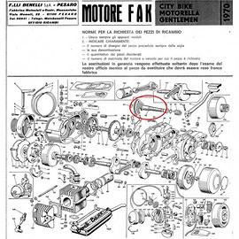 (R.13392) Vendo alberino messa in moto con ingranaggio da 12 denti nuovo per Benelli motore Fak - City Bike - Motorella - Gentleman dal 1970 - Motorella GL dal 1978 originale epoca con codice 71264000 - 71 26 40 00 - 2000320816 - 200.032.0.816 , per misure d esploso vedere foto