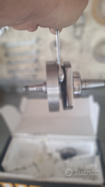 Vendo albero motore come da titolo, corsa 43mm, cono 20mm, anticipato, biella cromata, con cuscinetto lato volano con gabbia in nylon.