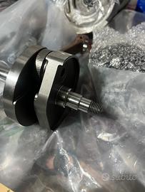 La forma del volantino lato frizione permette di sfruttare al massimo il ritardo d'aspirazione e la simmetria delle spalle garantisce vibrazioni molto limitare. Per l'installazione dell'albero è necessario barenare il carter lato volano ad una