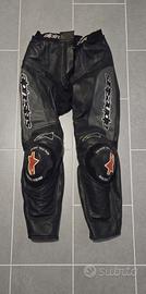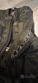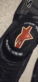 Tuta moto alpinestar uomo. Ottimo stato. Piccola imperfezione su manica sinistra messa in evidenza da foto. Comprende: -Protezione spalle e gomiti; -Tibia; -Saponette per ginocchia. Perfettamente integra