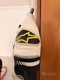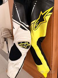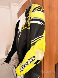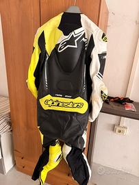 Come da titolo splendida tuta intera pelle Alpinestars, taglia 52, vendo perchè troppo piccola per me. La tuta è in perfette condizioni mai caduta né scivolata, solo un po’ sporca (moscerini, strusciate sulla moto) come si vede ben dalle foto. A dispozione per qualsiasi informazione
