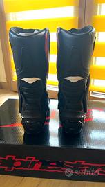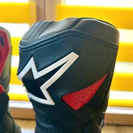 Alpinestars SMX-6 Drystar v3 stivali da moto impermeabili Gli stivali SMX-6 La tomaia ridisegnata si adatta ai contorni anatomici del piede per una maggiore flessibilità e comfort. Ogni componente dell'SMX-6 Drystar v3 è stato sviluppato tenendo conto delle esigenze prestazionali del ciclista. Gli stivali sono dotati della collaudata tecnologia Drystar di Alpinestars, che offre un'eccellente protezione in caso di pioggia e un'elevata traspirabilità. Tratti somatici: Tomaia in microfibra di alta qualità per protezione leggera, resistenza all'abrasione e flessibilità Fodera Drystar impermeabile e traspirante per una protezione ottimale dalle intemperie Le nuove zone di flessione sulla parte anteriore e posteriore sono realizzate in tessuto iniettato su una rete 3D con morbido TPU per migliorare la resistenza all'abrasione e mantenere la naturale libertà di movimento Ulteriore sviluppo del sistema di protezione della caviglia per il supporto biomeccanico e la protezione del polpaccio, dello stinco e della caviglia, con protezione aggiuntiva del tendine d'Achille e della caviglia Sistema Alpinestars Lace-Lock realizzato in resina polimerica avanzata per una chiusura rapida e sicura Nuova ghetta elastica per una calzata precisa Sistema di chiusura laterale con cerniera elastica e chiusura in Velcro Plantare anatomico in EVA rimovibile con superficie in elastan per un maggiore comfort Suola interna con rinforzo del gambo per il supporto e la protezione dell'arco plantare La suola in gomma leggera offre un'eccellente presa sui pedali Indicazioni: Stivali protettivi per motociclisti (EN 13634:2017) La protezione della caviglia in TPU fornisce supporto biomeccanico e protezione tra polpaccio, tibia e caviglia Nuova area di cambio in TPU per una migliore protezione nella zona inferiore mediale Protezione dello stinco in TPU posizionata strategicamente per una protezione dagli urti. Nuovi mai usati, vendo per regalo errato, ho un'enduro e questi sono stivali da pista.