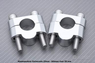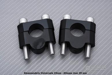 Coppia Riser universali in alluminio anodizzato intagliato nella massa, compatibile con tutte le moto che hanno un manubrio di diametro compreso tra 22 mm.