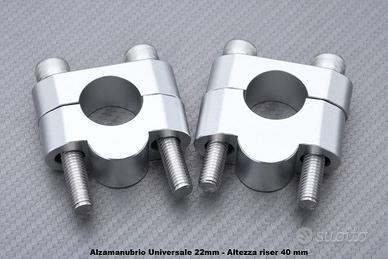 Coppia Riser universali in alluminio anodizzato intagliato nella massa, compatibile con tutte le moto che hanno un manubrio di diametro compreso tra 22 mm.