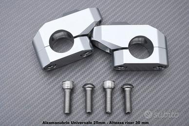 Coppia Riser universali in alluminio anodizzato intagliato nella massa, compatibile con tutte le moto che hanno un manubrio di diametro compreso tra 25 mm.