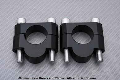 Coppia Riser universali in alluminio anodizzato intagliato nella massa, compatibile con tutte le moto che hanno un manubrio di diametro compreso tra 28 mm.