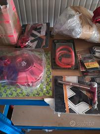Vendo i seguenti pezzi per motore minarelli AM6. Tutto nuovo ancora confezionato: COVER VOLANO ERGAL ANODIZZATO ROSSO T4TUNE 20€ BIELLETTA FRIZIONE ERGAL ANODIZZATA ROSSO TNT 25€ PEDALE FRENO POSTERIORE ERGAL ANODIZZATO ROSSO T4TUNE 25€ COPRI PIGNONE ANODIZZATO ROSSO TNT 15€ Cavo candela rosso con pipetta CARENZI 15€ Molle frizione rinforzate Racing Malossi 15€ Manopole DOMINO PITON bianche/rosse 15€ Riser ergal anodizzato rosso KITE 20€ Gas rapido Domino 30€ Leva freno anteriore con pompa 20€ Pompa freno posteriore con serbatoio 20€ CULLA TELAIO PER MOTORE AM6 15€