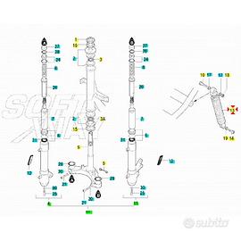 (R.16268) Vendo ammortizzatore nuovo per Malaguti F 12 R Phantom LC 50 cc dal 2007 di colore argento marchiato 207 con codice Malaguti 01007708 , per applicazioni ed esploso vedere foto