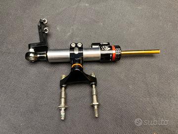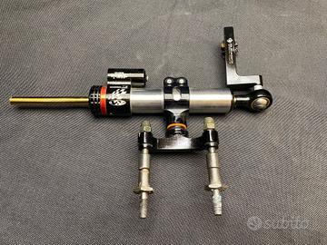 Ammortizzatore di sterzo completo di staffe usato in ottime condizini compatibile con DUCATI Hypermotard 821/939 2013-2015 - Hyperstarda 821/939 2016-2018 Cilindro esterno in Titanio Sistema a doppia camera con cilindro coassiale interno in lega di Alluminio Al 7075 con trattamento di anodizzazione Stelo in acciaio legato ad alta resistenza con riporto di cromo duro.Serbatoio esterno di compensazione termica controllata, pressurizzato Azoto (N2)Ghiera di regolazione freno idraulico a fori calibrati.Sistema di smorzamento idraulico progressivo "Speed Sensitive" (13 posizioni).Snodo anteriore in lega di Alluminio con rotula in Acciaio cromato/PTFE/Bronzo Per conferma disponibilitá, informazioni o compatibilitá con la vostra moto contattare il 3389291891