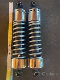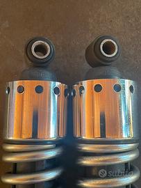 Quelli in foto sono gli ammortizzatori posteriori di serie Harley-Davidson Dyna Street Bob (FXDB), modello 2006–2017, nella loro versione OEM standard.