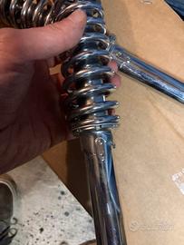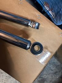 Vendo coppia di ammortizzatori cromati, interasse 350mm, regolabili in precarico molla. Diametro foro fissaggio 10mm. Nuovi, mai montati.
