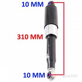 (R.6450) Vendo coppia ammortizzatori posteriori nuovi per motocicli epoca di colore nero e cromato di marca Audax con interasse fori 310 mm e diametro fori fissaggio 10 mm e leggeri segni di magazzinaggio , il prezzo si intende per alla singola coppia , per misure vedere foto