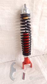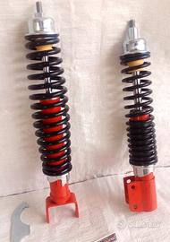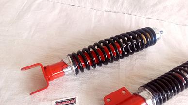 Coppia Ammortizzatore sportivi regolabili carbone racing anteriore e posteriore rosso nero con regolazione precarico ed estensione della molla per una maggiore stabilità in ingresso ed uscita dalle curve e un miglior controllo della Vespa