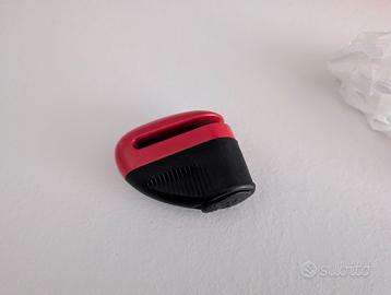 Bloccadisco con corpo in lega di metallo super resistente e perno da 5 mm in acciaio rinforzato. Protezione in plastica antipolvere per proteggere il lucchetto. Chiave piatta antiscasso. Copre una vasta gamma di ruote con freno a disco. Sistema di bloccaggio a pressione. Comoda borsa di dotazione. Cavetto reminder di sicurezza incluso. Non è mai stato usato.