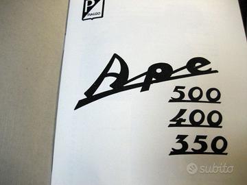Ape Piaggio Manuale uso e manutenzione + Organizzazione di vendita e assistenza, anno 1967. ORIGINALE, no ristampa..Condizioni: splendido, come nuovo, senza pieghe, ingiallimenti o scritte. Per Modelli Ape Piaggio 500 - 400 - 350. Dis. n* 153113 - 2a edizione 4500/6610.