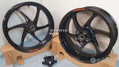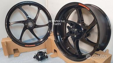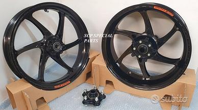 SET RUOTE CERCHI OZ GASS RSA RS-A FORGIATI, specifici per: APRILIA RSV 4 1100 cc, misura post. 6,00x 17 ant. 3,5x17. APRILIA TUONO V4 1100 cc, misura post. 6,00x 17 ant. 3,5x17. APRILIA RSV 4 1000 cc, misura post. 6,00x 17 ant. 3,5x17. APRILIA TUONO V4 1000 cc, misura post. 6,00x 17 ant. 3,5x17. SI MONTANO SENZA MODIFICHE La coppia pesa solamente 8,2 kg circa, compreso il mozzo porta corona, quindi molti kg in meno dei cerchi di serie. Direttamente dai campi di gara della SBK ora disponibile nella versione stradale. La ruota in lega di alluminio più leggera per uso stradale. Si avvale di tutte le estremizzazioni sviluppate sui campi di gara, tra cui l'alleggerimento canale HLT e la razza a doppia sezione. Nessun compromesso per questa ruota. Disponibile anche con finitura esclusiva in titanio. DISPONIBILI ANODIZZATI NERO ORO TITANIO DISPONIBILI COME OPTIONAL: La coppia di dischi RM2 full flottante con campana in ergal alleggerito, massima performance, con pista frenante da ben 6 mm di spessore e diametro 330 mm (si possono mantenere le pinze freno di serie). I dischi full flottanti garantiscono un perfetto accoppiamento con la pastiglia freno per una frenata immediata senza ritardi ed efficace. Lo spessore da 6 mm annulla il fastidioso fenomeno di fading, ovvero quando all'aumentare delle temperature di esercizio dei dischi e il conseguente aumento della temperatura di tutto l impianto frenante la pompa freno diventa spugnosa e si "allunga" la corsa della stessa. La pista frenante racing da 330mm con speciale lavorazione del profilo a cuspide offre una perfetta resa della pastiglia freno e un notevole aumento della potenza frenante. QUESTO SET SPECIALE GARANTISCE L'OTTENIMENTO DI UNA MANEGGEVOLEZZA ELEVATISSIMA A TUTTO VANTAGGIO DI CAMBI DIREZIONE RAPIDISSIMI CON LA POSSIBILITA' DI RITARDARE AL MASSIMO LA STACCATA CON INGRESSI IN CURVA FULMINEI. I DISCHI GARANTISCONO UNA POTENZA FRENANTE NOTEVOLMENTE AUMENTATA A PARITA' DI