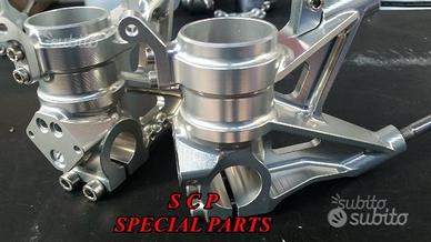 Per i modelli RSV 1000, TUONO, RSV4 E TUONO V4 dotati di forcelle ohlins realizziamo piedini radiali specifici ricavati dal pieno. Piedini ricavati dal pieno disponibili con interasse 108mm oppure a richiesta da 100 mm. Disponibili anche per le forcelle showa. Possiamo effettuare particolari lavorazioni meccaniche su richiesta del cliente, al fine di personalizzare al massimo tale realizzazione. Disponibile qualsiasi colore di anodizzazione. Si montano plug & play e non richiedono alcuna modifica. Possiamo progettare e realizzare piedini radiali speciali per qualsiasi moto.