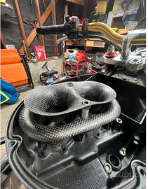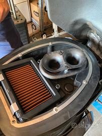 Kit Aspirazione Duale in Fibra di Carbonio per Aprilia RSV 1000R e Aprilia Tuono 1000 R Aprilia rsv1000 old tuono 1000 old Progettato per migliorare in modo concreto l’erogazione del motore, questo kit garantisce: Incremento di coppia e cavalli ai medi e bassi regimi Maggiore fluidità di guida Riduzione dell’effetto “on-off” Montaggio plug & play Nessuna necessità di riprogrammare la centralina Realizzato in fibra di carbonio per massime prestazioni e qualità costruttiva. Il kit include Cornetto superiore Cornetto inferiore Viti fissaggio Distanziali