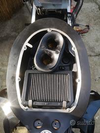 Kit Aspirazione Duale in Fibra di Carbonio per Aprilia RSV 1000R e Aprilia Tuono 1000 R Aprilia rsv1000 old tuono 1000 old Progettato per migliorare in modo concreto l’erogazione del motore, questo kit garantisce: Incremento di coppia e cavalli ai medi e bassi regimi Maggiore fluidità di guida Riduzione dell’effetto “on-off” Montaggio plug & play Nessuna necessità di riprogrammare la centralina Realizzato in fibra di carbonio per massime prestazioni e qualità costruttiva. Il kit include Cornetto superiore Cornetto inferiore Viti fissaggio Distanziali