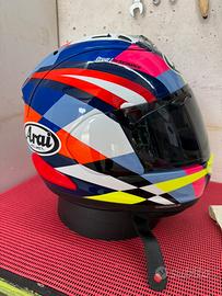 Ancora in garanzia estesa per 5 anni, preso la scorsa estate completo di visiera chiara mai utilizzata, fumé con pinlock, ProShield con visierino parasole esterna anch'essa con pinlock tutte originali Arai e due specchiate non originali. Usato pochissimo in quanto poco adatto alla forma della mia testa. Colorazione Misano Circuit. Vendo a € 700,00 il kit completo.