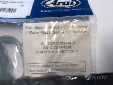 VENDO VISIERA ARAI FUMÈ NUOVA MAI APERTA ANCORA IN CONFEZIONE ORIGINALE NO VENDITA A DISTANZA E CON SUBITO.IT ! CONSEGNA A DOMICILIO NO PERDITEMPO! NON USO PAYPAL! PERFETTA PER MODELLI : RX-7, CORSAIR-V, RX-Q, QUANTUM, CHASER-V & VECTOR-2 PER GLI STESSI MODELLI HO ANCHE VISIERA TRASPARENTE AL PREZZO DI 50?