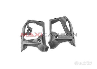 Articoli in pura fibra di carbonio per Ducati Monster 1200 R (2016-2019), per esaltare sia l’aspetto che le prestazioni della propria moto: - Paraleve - Convogliatori interni radiatore - Paracalore collettore - Paratacchi - Paracalore terminale Termignoni - Staffe vaschette liquidi - Paracalore terminale - Paracalore interno - Listello radiatore acqua - Copriradiatore acqua - Fianchetto sinistro sottotelaio - Prese aria impianto frenante - Cover corona - Parafango anteriore - Coprifaro - Copriradiatori laterali - Parafango posteriore - Fianchetto destro sottotelaio - Paracalore collettore - Copripignone La finitura del carbonio è lucida (disponibile su richiesta anche con finitura opaca), e la trama utilizzata è la stessa di Ducati. I particolari in vendita sono realizzati in autoclave con trasparente anti-UV, e sono perfettamente intercambiabili con gli originali. È sufficiente smontare i pezzi originali e montare i corrispondenti in fibra di carbonio. Tutti i pezzi sono fatturabili, sono immediatamente disponibili a magazzino, e vengono spediti tramite corriere espresso tracciabile con consegna in 24/48h (8 euro). In alternativa, è possibile ritirare gratuitamente a mano presso il nostro magazzino a Milano. Accettiamo pagamenti tramite bonifico, carte di credito, PayPal o contrassegno (3 euro). Ulteriori foto, informazioni su montaggio, tipologia della fibra di carbonio e recensioni dei clienti sono disponibili sul nostro sito. Restiamo a completa disposizione per qualsiasi domanda. Maxicarbon maxicarbon.com +39 347-0469512