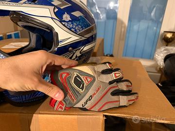 Attrezzatura da Moto Cross. Nello specifico: Casco Shark Mascherina UFO Plast Pettorina Scorpion ufo Guanti Ufo Pantalone Ufo Maglia Ufo Ginocchiere